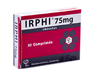 Irbésartan | tablets 75mg, 150 mg box of 10, 20 & 30 / 300 mg box of 10 & 20 / 300 mg box of 30 | Antihypertensive | ||